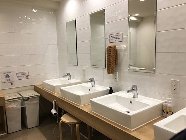 浴室跟廁所都在房間內,用拉門隔開,浴室我印象中大概有3~4間吧,廁所好像有5~6間,洗手台也有好幾個,環境都很乾淨整齊,至於浴室跟廁所夠不夠用呢?至少我入住期間是完全沒跟其他人強碰啦,不管是洗澡刷牙吹頭髮,不用等待的感覺實在是很好啊~~