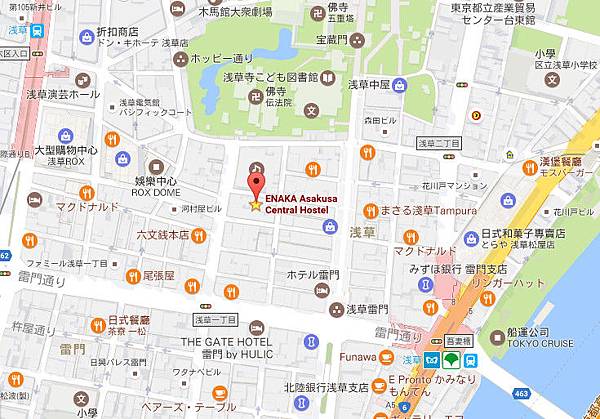 ENAKA Asakusa Central Hostel位於淺草地鐵站附近,走路過去大概5~10分鐘,離淺草寺也很近,大概3~5分鐘步行即可到達,步行範圍內有超市、便利商店跟不少餐廳,用餐算是滿方便的。